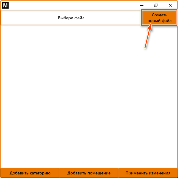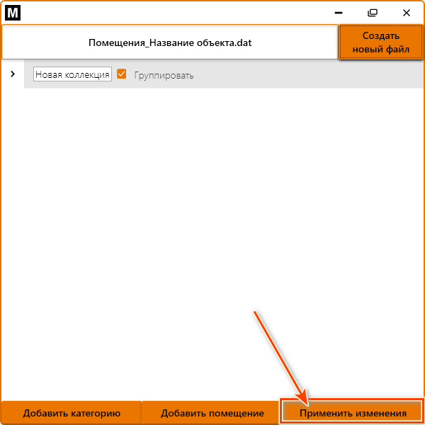 Для создания файла с именами помещений необходимо нажать на... «Задать имена помещений» [8] (см. Рисунок 3). Далее нажмите «Создать новый файл» (см. Рисунок 4)
