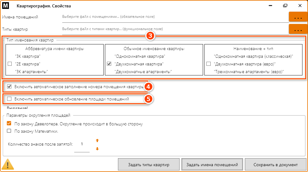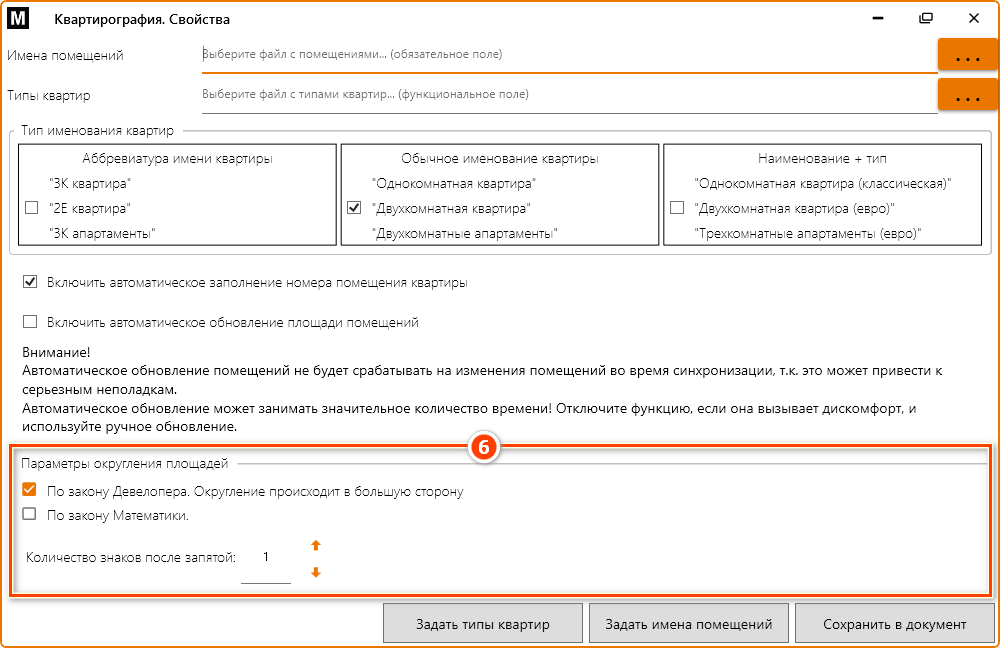 [6] – Задайте необходимые параметры округления площадей (см. Рисунок 11).