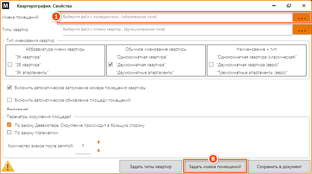 Создайте файл с именами помещений [8], либо укажите существующий [1] (см. Рисунок 3).