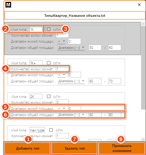 Подробнее в разделе 2.3 «Настройка файла с типами квартир».