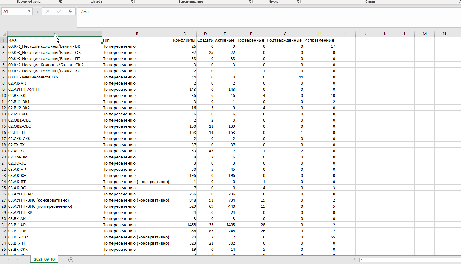 В таблице будут отображаться все проверки и количество конфликтов (см. Рисунок 16)