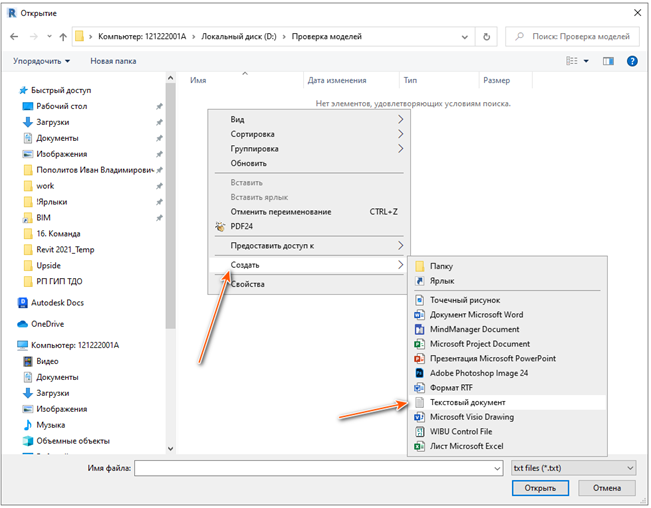 2 – Нажмите ПКМ на свободное место, далее Создать/Текстовый документ (см. Рисунок 4);