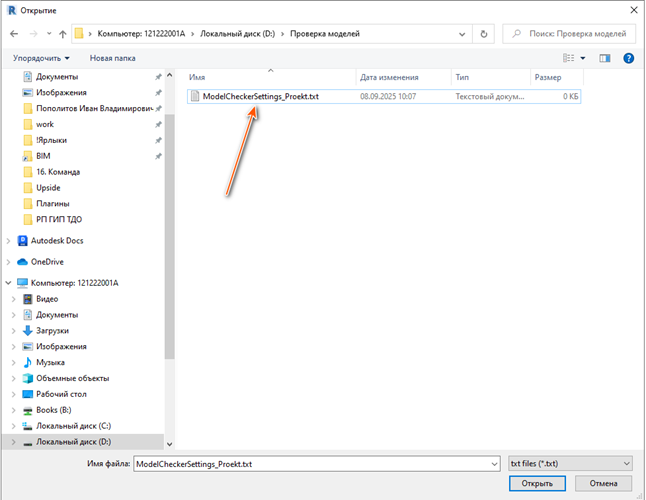 3 – Назовите файл по шаблону ModelCheckerSettings_ШифрПроекта (см. Рисунок 5);